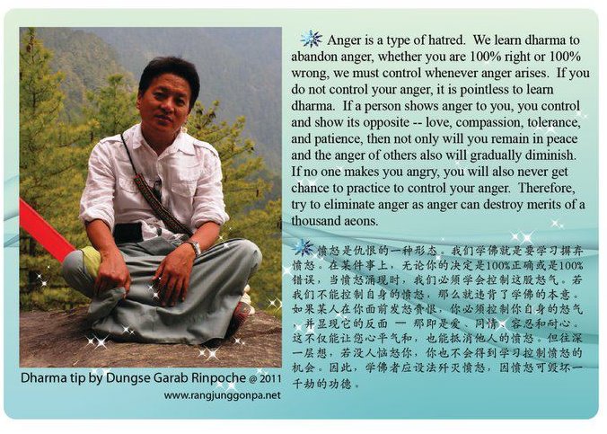 如果大家有時間,就要修持和禪修。 我們大家包括我自己都在輪迴的世界中, 其業報身或業力一直在改變。前一刻不高興,後一刻快樂; 前一刻境遇不佳,後一刻境遇佳,一直不斷地在改變, 這是因為二元對待分別的習氣。為何致此, 因為我們對佛陀和禪修缺乏信心和虔敬心,心一直在忙碌中, 養成分別的習氣,無法放鬆。另一方面就是沒有禪修, 心一直向外馳求充滿了虛偽,以致無法禪修。